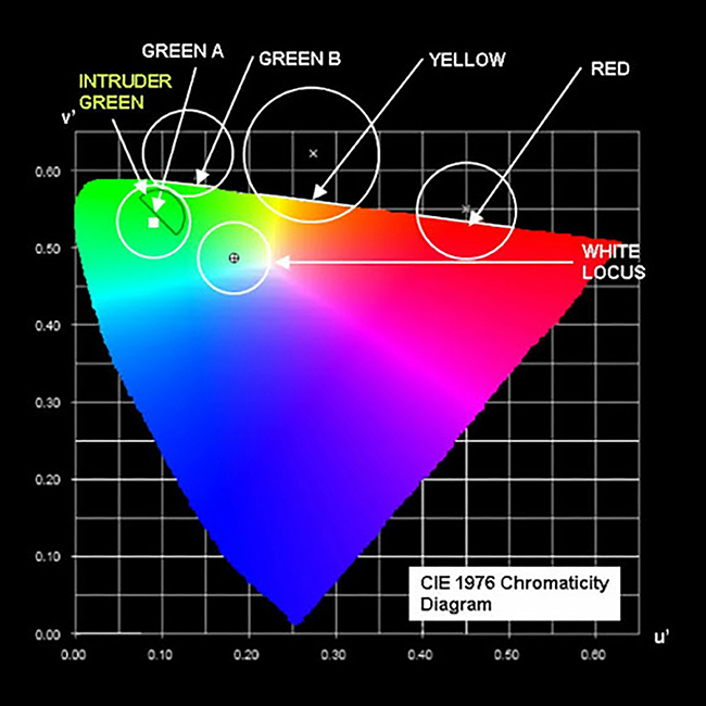 • Color Compliance: Ensures that emitted light falls within defined chromaticity boundaries for NVIS-approved colors.