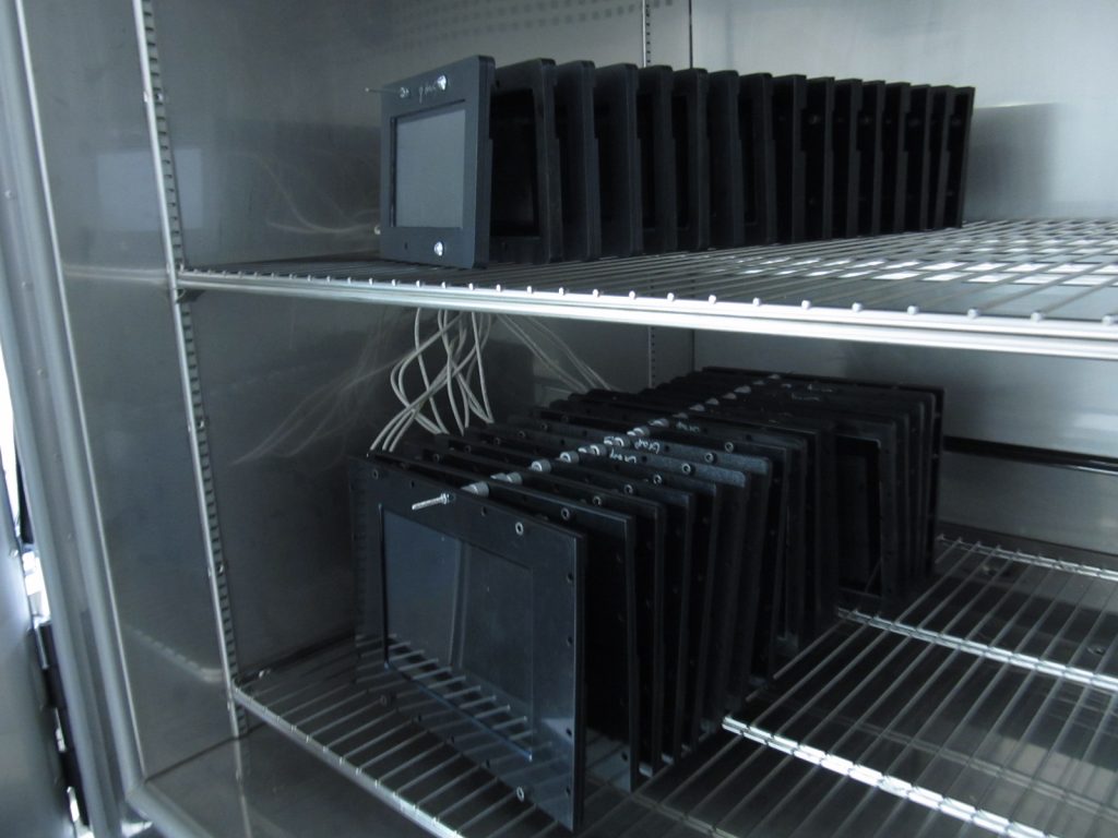 Grayhill uses two-zone and three-zone thermal shock chambers. These chambers maintain precise hot and cold temperatures and allow rapid movement of products between zones.