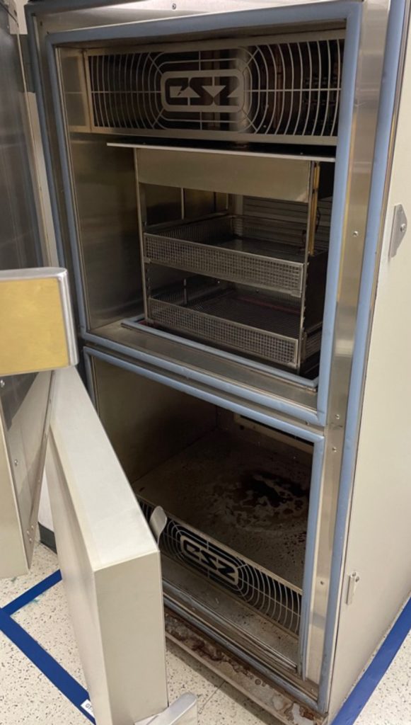 Thermal shock chamber showing hot and cold zones